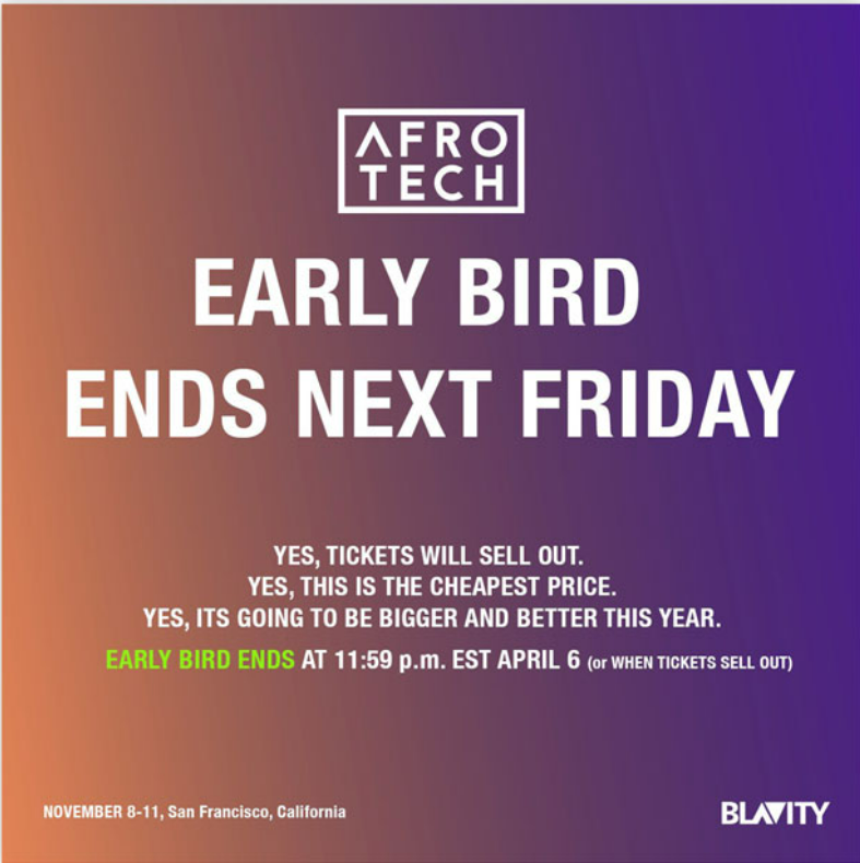 Afrotech, a Black tech, and web3 event offered early bird pricing on their site to encourage buyers.