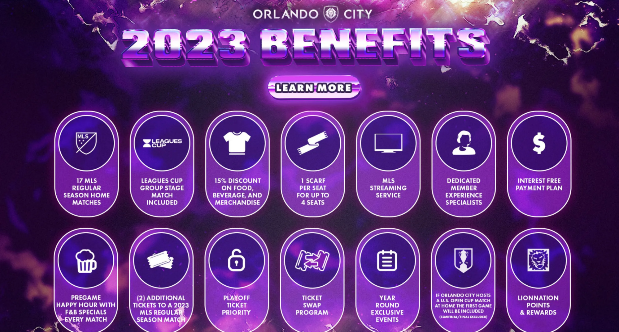 Offering the bundled benefits as free or discounted add-ons to the event tickets is a business decision that you can make based on your profit margins. Here’s an example of a Season ticket in Orlando City where they offer a lot of benefits along with ticket purchases.