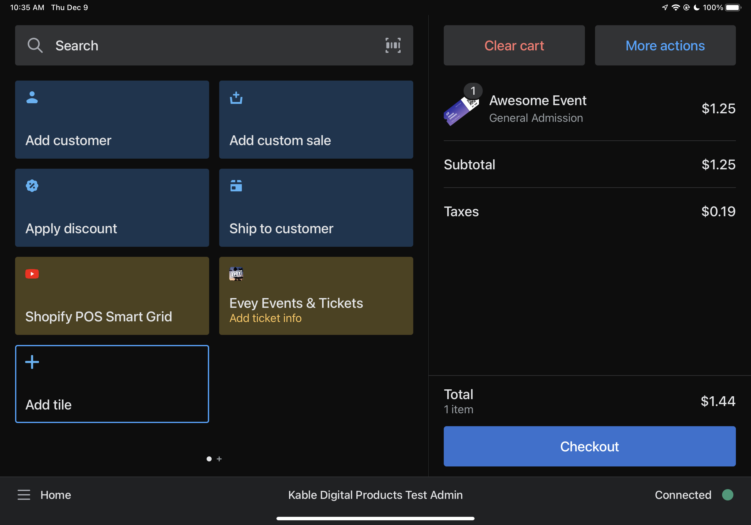 The first step is to add the product to the cart: you can do so by searching for the product in your POS and, once found, choosing the ticket type you want to sell. Then, add it to the cart.